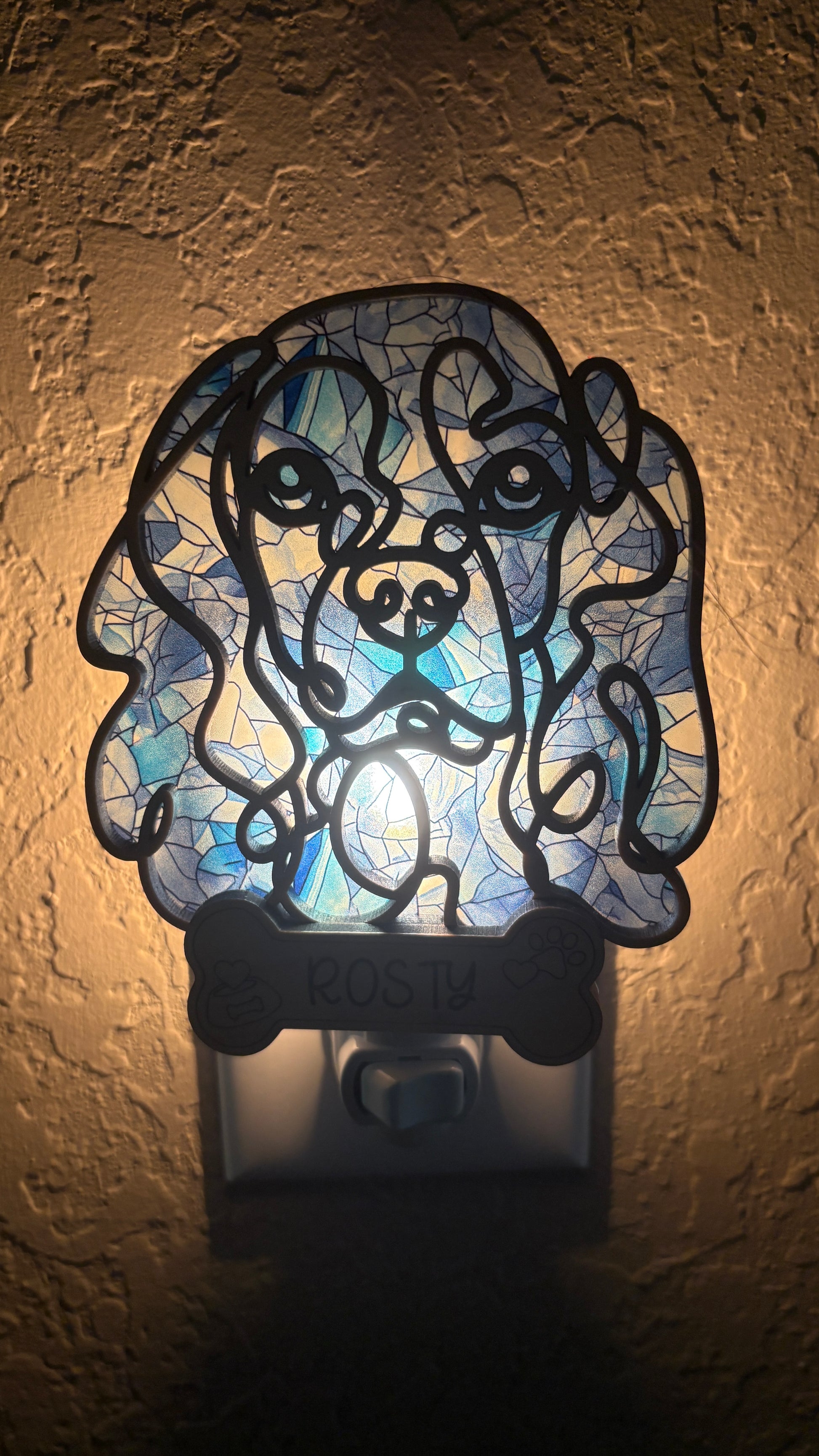 Personalized Nightlight made from maple wood & acrylic, with LED light and custom backgrounds. Perfect for dog lovers, offering soft, soothing glow!