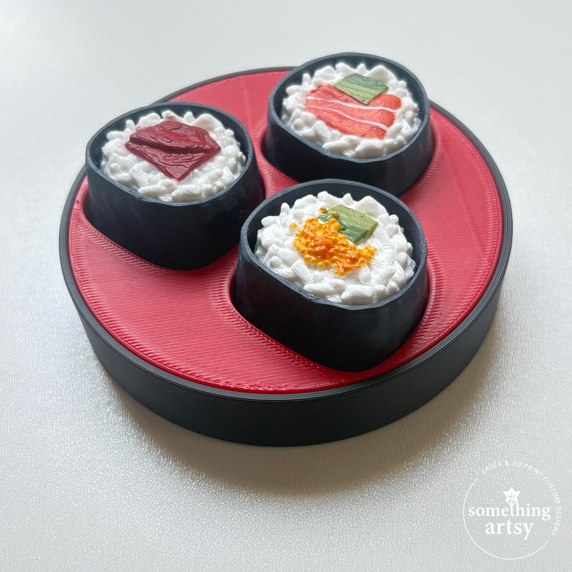 Satisfy your love for sushi and fidget toys with this fun and quirky Sushi Clicker Set! Each piece is designed to look like sushi—adorable, compact, and irresistibly clicky. Now presented in a custom rotating circular tray, this set is not only perfect for fidgeting but also doubles as eye-catching desk decor.